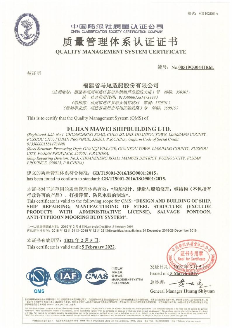 質(zhì)量管理體系認(rèn)證證書(shū)